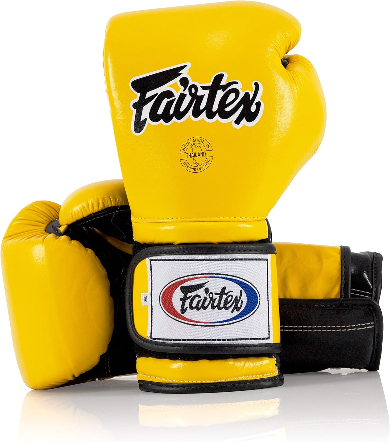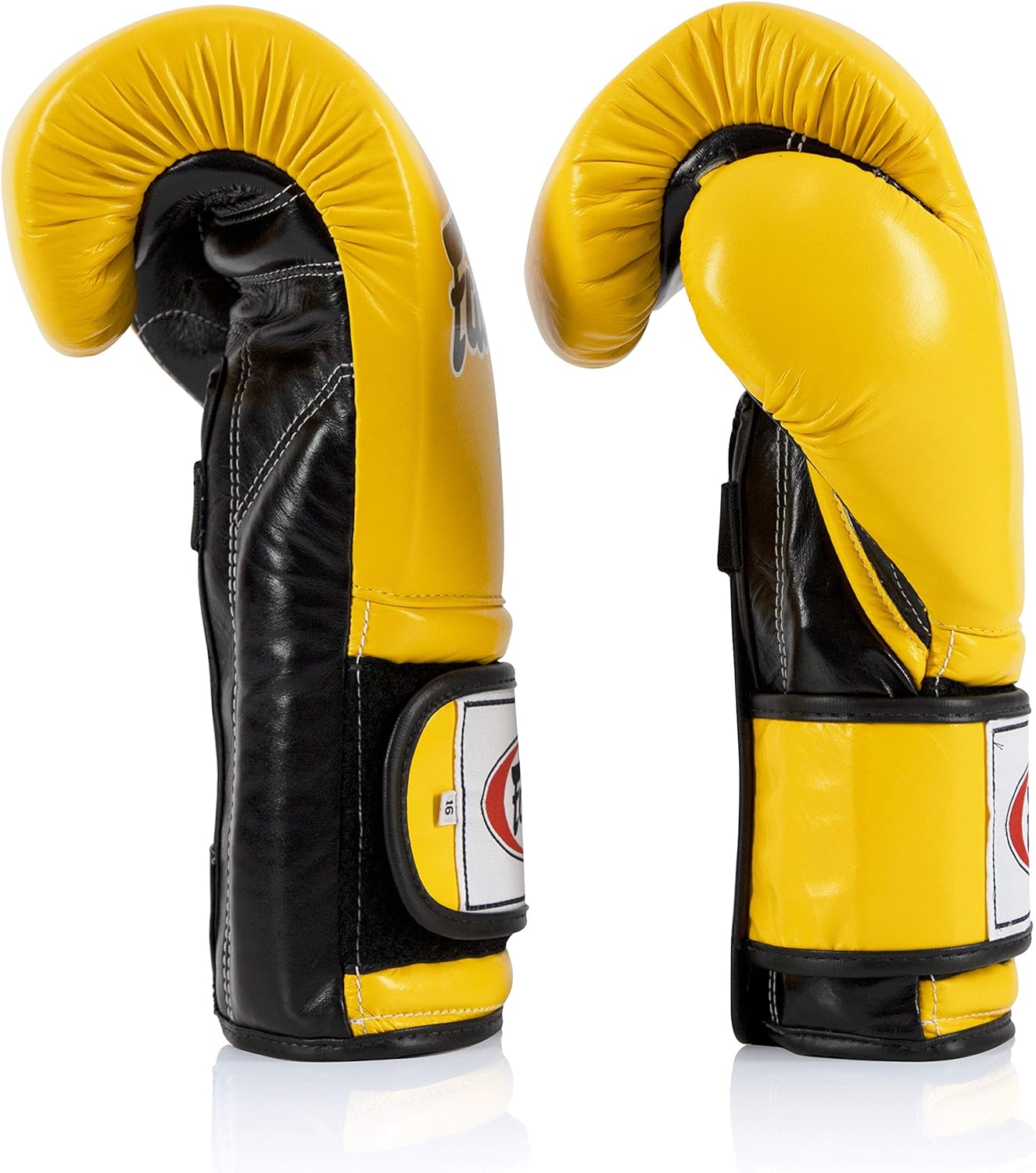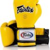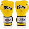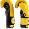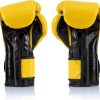 Fairtex Muay Thai Boxing Gloves BGV9 – Heavy Hitter Mexican Style – Minor Change Black with Yellow Piping 12 14 16 oz. Training & Sparring Gloves for Kick Boxing MMA K1