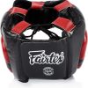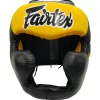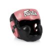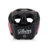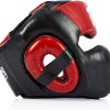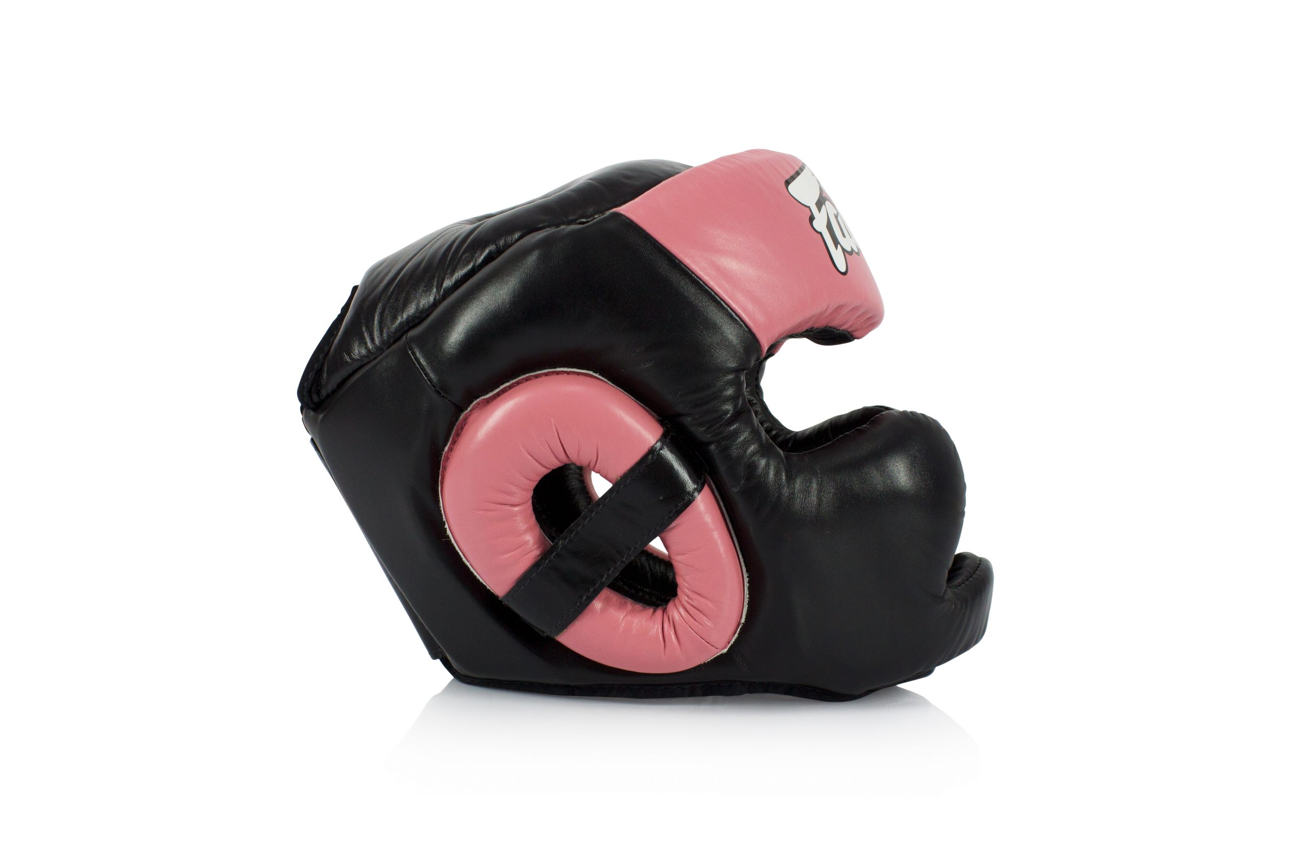The Fairtex HG13 Headgear features a unique hook-shaped forehead design, enhancing protection while providing optimal peripheral vision. Constructed with durable materials and thick padding, it is perfect for various contact sports.
